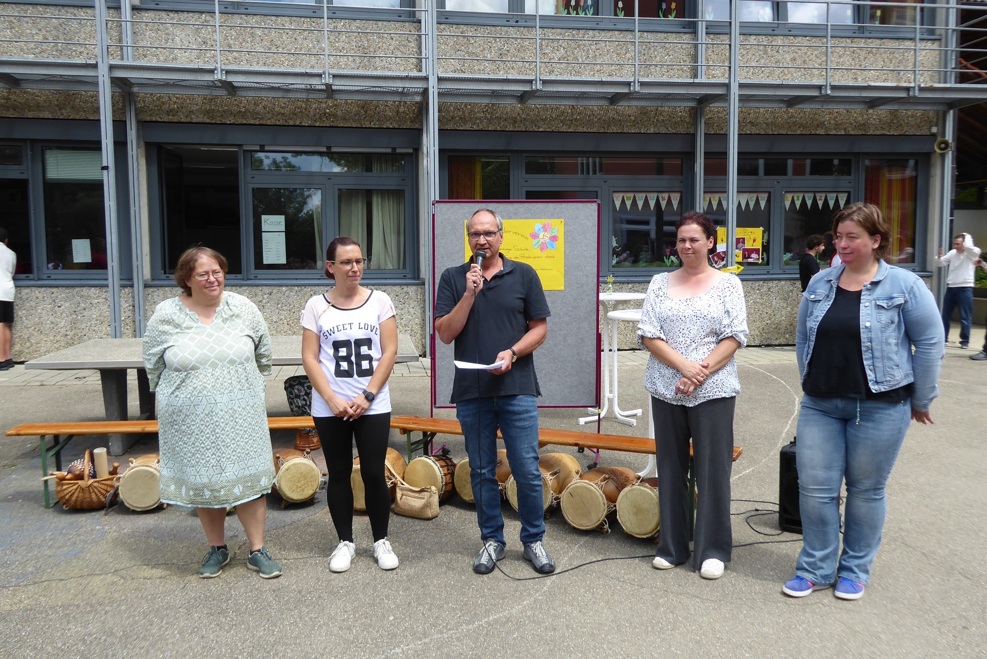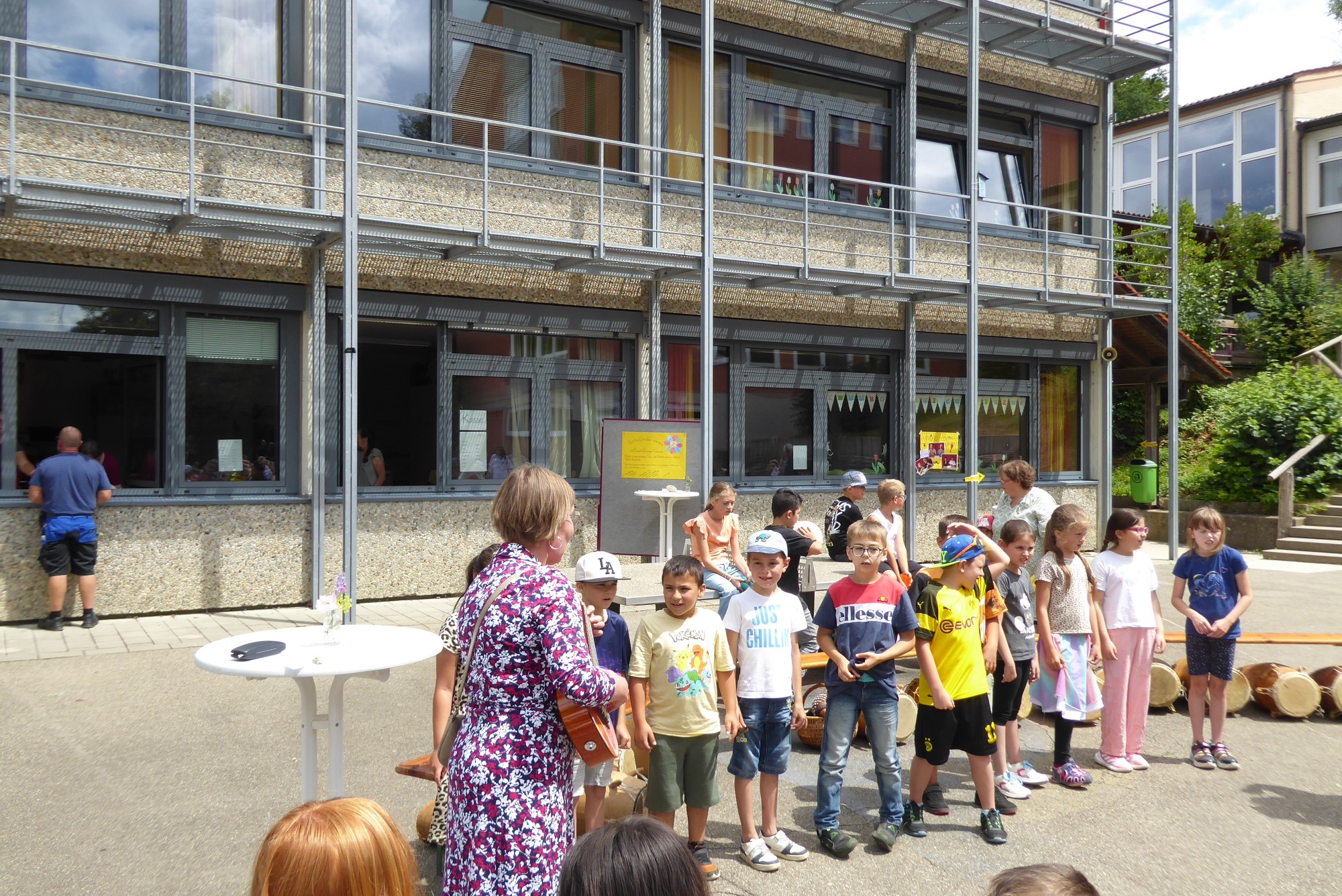 Am 11.07.2025 war es endlich soweit. Die Luise Leininger Schule feierte zusammen mit Schülerinnen und Schülern, den Eltern und Angehörigen der Schule ein gemeinsames Schulfest. Bei schönem Sonnenschein waren viele Besucherinnen und Besucher an unserer Schule. Neben einer allgemeinen Begrüßung und einer Einstimmung durch die Trommel-AG unter der Leitung von Frau Hembach standen auch verschiedene Aufführungen der Schülergruppen auf dem Programm. Zusätzlich gab es viele Mitmachangebote wie beispielsweise eine Spielstraße, ein Erste-Hilfe-Workshop, eine Fotobox, Torwandschießen und eine Schulgartenbesichtigung.